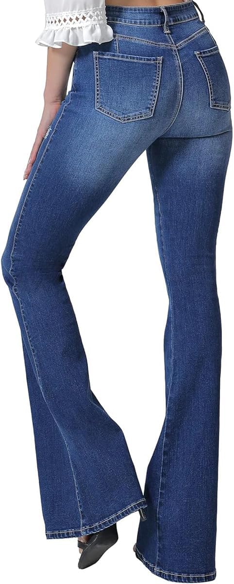 - Popular Bell Bottom Style – High waisted jeans for women, elastic waist,wide flared jeans for women, frayed hem. These flare bell bottom jeans pants are popular with women because they highlights charming figure and show long legs very well.