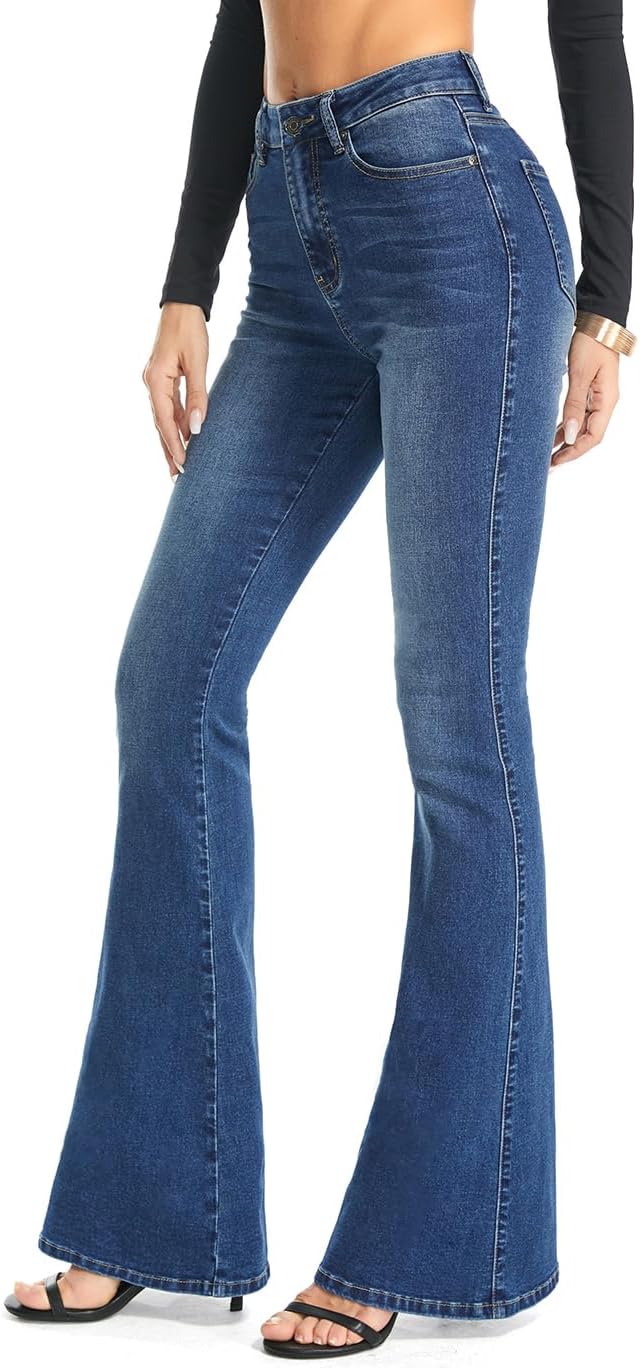 - Special Cutting: We designed the special Curvy Mid-rise waist; there is no gap at waist. The back deign hugs your curves well and push up your booty nicely. Leg Shape starts to become wide from the knee to the bottom, it gives your great covers for your leg shape, also it makes your leg looks straight and long. The retro flared outlook makes you look fashion and stylish again.