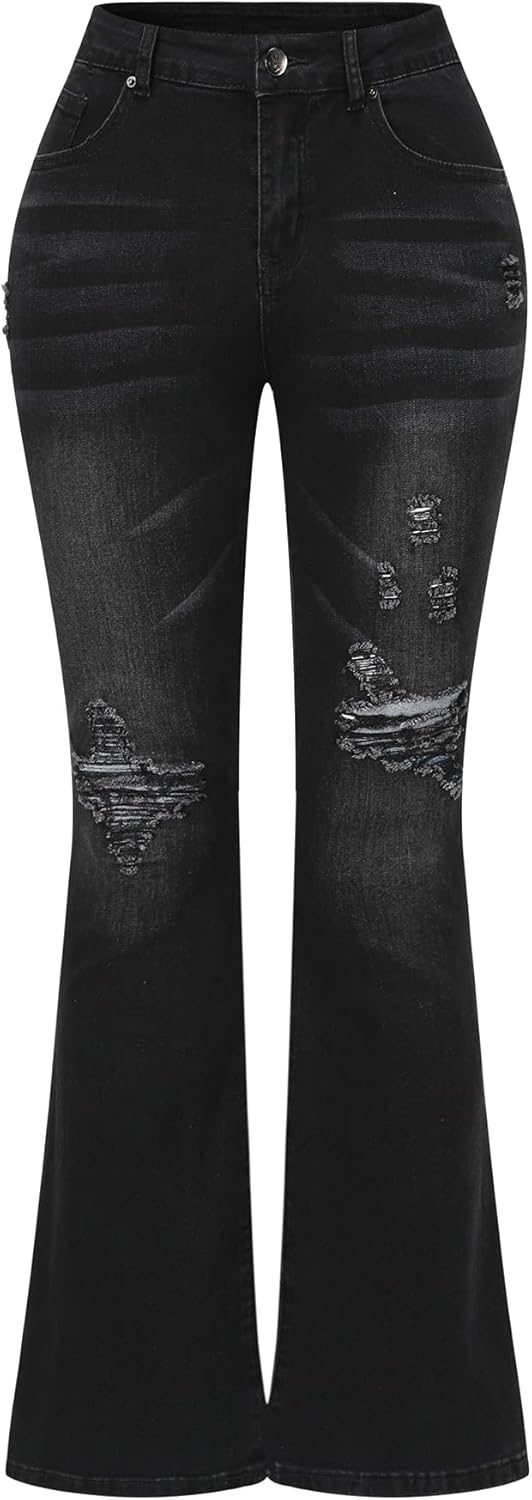 Bell Bottom Jeans for Women Ripped High Waisted Classic Flared Denim Pants