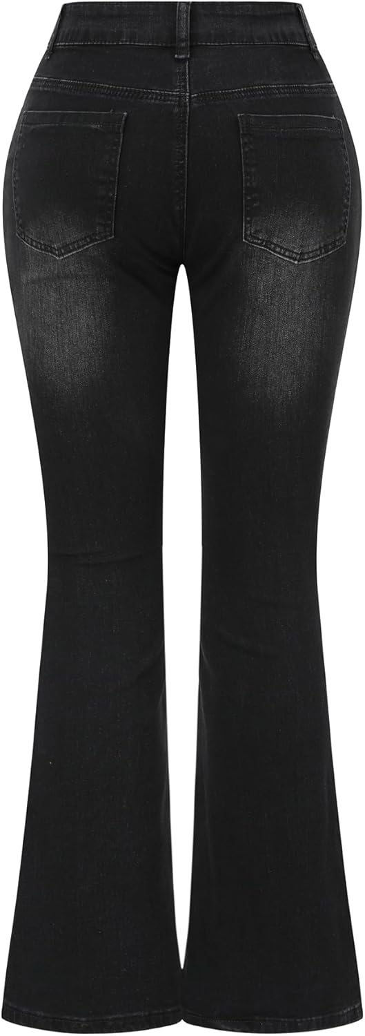 Womens Stretchy Mid Rise Flare Jeans Distressed Denim Bell Bottom Pants